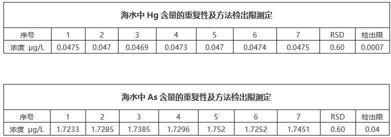 1、针对海水采用优化的大体积间歇进样程序,获得更低检出限