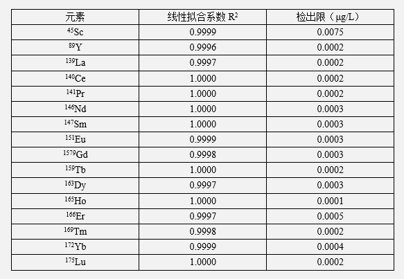 超纯水(电阻率≥18.2 MΩ·cm,25℃);硝酸(优级纯);盐酸(优级纯);铟、铑、铼和铯标准溶液(1000ug/mL,北京有色金属);16种稀土元素标准溶液(1000 ug/mL,北京有色金属)。