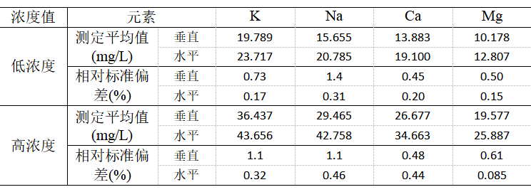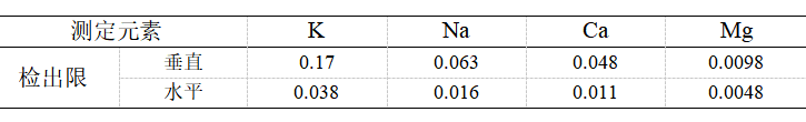 l 检出限实验表明,该方法对钾、钠、钙、镁四种元素的检出限均达到了极低的检测水平,能够满足对土壤中痕量元素的分析需求