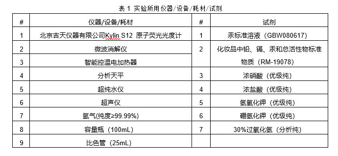 应用北京吉天仪器有限公司的Kylin S12原子荧光光度计测定化妆品中汞的含量。实验结果表明:汞线性良好(r=0.9998),仪器精密度为0.50%,仪器检出限为0.0023μg/L,以微波消解沐浴露、洗手液及洗发露样品,取样量为0.5g时,汞的方法检出限为0.00012μg/g,加标回收率在96.2%~104.3%之间。采用Kylin S12可以测定化妆品中汞的含量,结果真实可靠。此方法同样适用于吉天仪器其他型号原子荧光设备,各位用户朋友如果在能力验证过程中遇到问题,可拨打4000688800咨询。