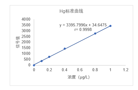 样品经微波消解处理后,汞被溶出。汞离子与硼氢化钾反应生成原子态汞,由载气(氩气)带入原子化器中,在特制汞空心阴极灯照射下,基态汞原子被激发至高能态,去活化回到基态后发射出特征波长的荧光,在一定浓度范围内,其强度与汞含量成正比,外标法定量。