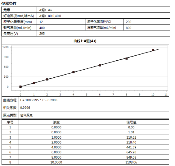 将标准溶液依次进样 ,以元素浓度为横坐标 ,信号强度为纵坐标绘制标准曲线, 线性图见图 1 ,线性及相关系数见表 3。