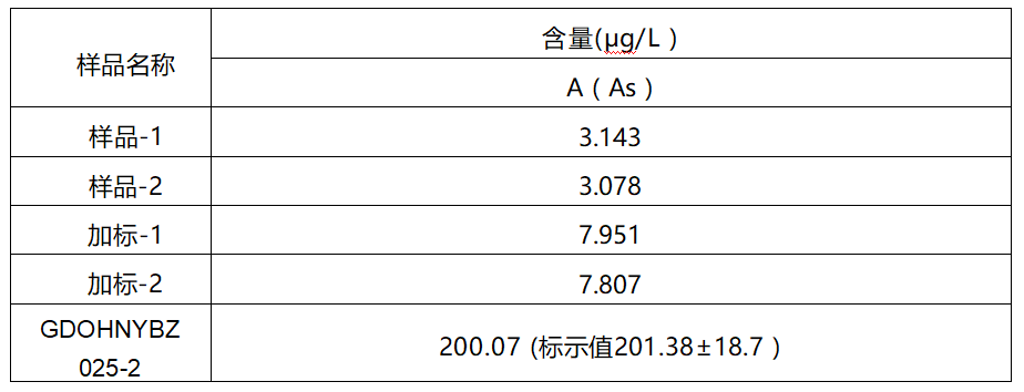 样品-1 ,样品-2 ,加标-1 ,加标-2 ,GDOHNYBZ025-2分别进样 ,测得样品的浓度见表5 ,加标回收见表6。