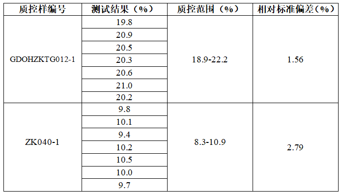 结果表明:精密度是1.56%和2.79%,质控样品在参考值范围内,准确性好,适用于粉尘中游离二氧化硅含量的检测。