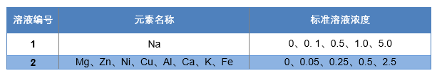 标准溶液配置:被测元素标准溶液配制梯度见下表。线性相关系数均大于0.999。