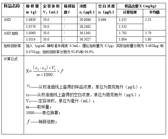 应用吉天仪器有限公司的 Kylin S18四通道原子荧光光度计测定饲料中的砷含量,检测结果准确性高,符合国标要求。本方法前处理简单、快速,线性范围较宽,检出限较低,准确度较高,也适合于饲料中汞、砷及无机砷、锡、硒等元素的测定。