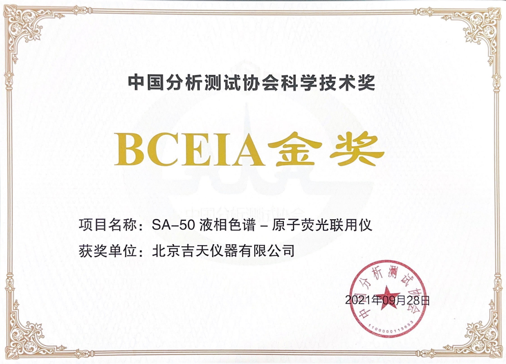 SA-50液相色谱-原子荧光联用仪(LC-AFS)为公司第三代形态分析仪,集吉天仪器多年形态分析经验之大成,内置成熟的分析方法,荣获2021年BCEIA金奖。