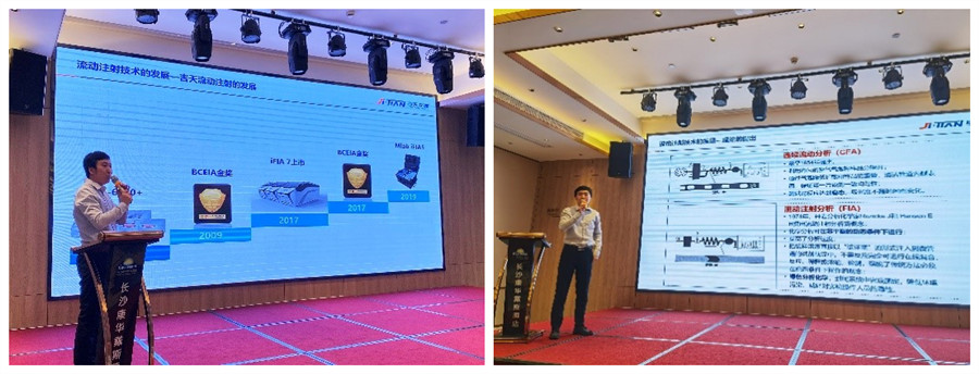 同时吉天仪器产品经理赵昕在培训班上做关于水质中《流动注射在环境监测中应用》的报告,详细介绍了流动注射技术的发展以及在环境监测中的应用和技术的优势,并和在场的老师分享了相关的应用案例。